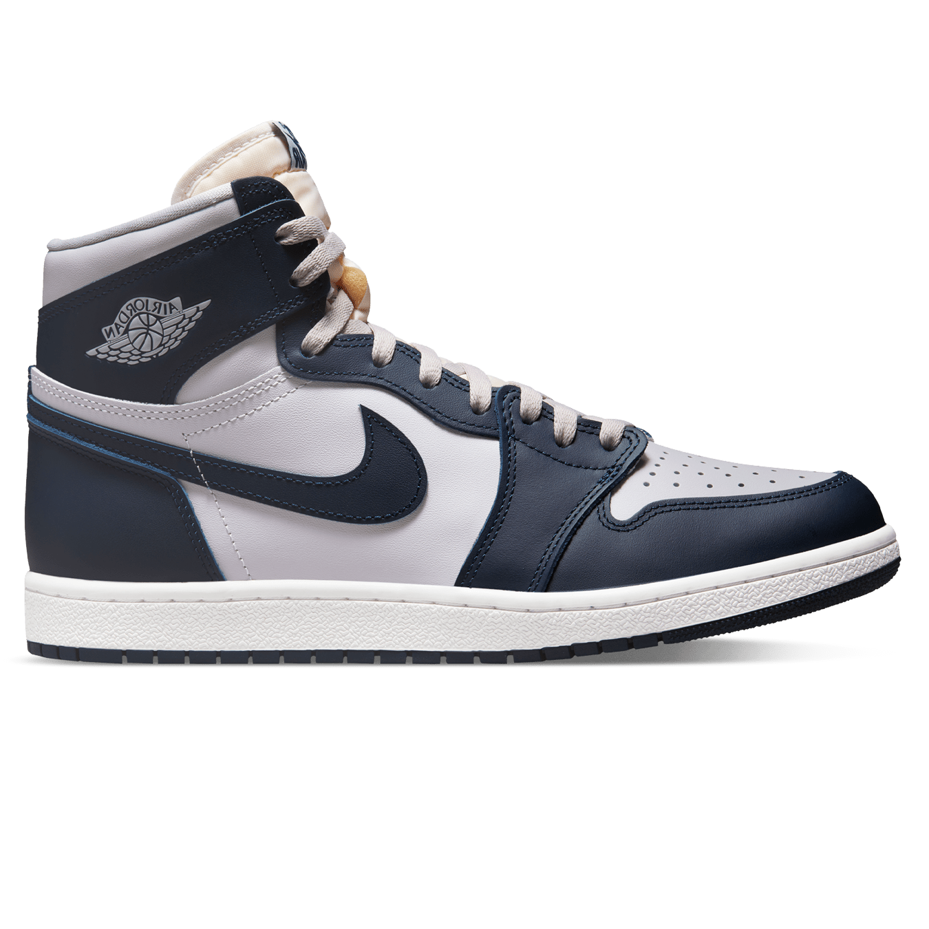 The Hoyas’ rich blue and grey tones aren’t new to the NIKE, Inc. family of brands, having appeared on the Nike Dunk High‘s inaugural collection in 1985. Since then, the two-color arrangement has appeared on other popular silhouettes, including the Air Jordan 11 Low. It’s appearance on the latest iteration of #23’s 36-year-old silhouette, however, is particularly a treat as it harkens back to the Swoosh’s “Be True To Your School” campaign, and lands on the closest-to-the-original build of the Jordan 1 currently offered. High-quality leather throughout the upper divvy up the light grey and deep blue colors borrowed from Georgetown University, while nylon tongues deliver vintage appeal given their slightly-yellowed makeup. As was the case on the original first Air Jordan, sizing information is stamped directly on the inner collar instead of on a tag. Together, evert component helps strike the perfect balance between heritage and future ambitions.