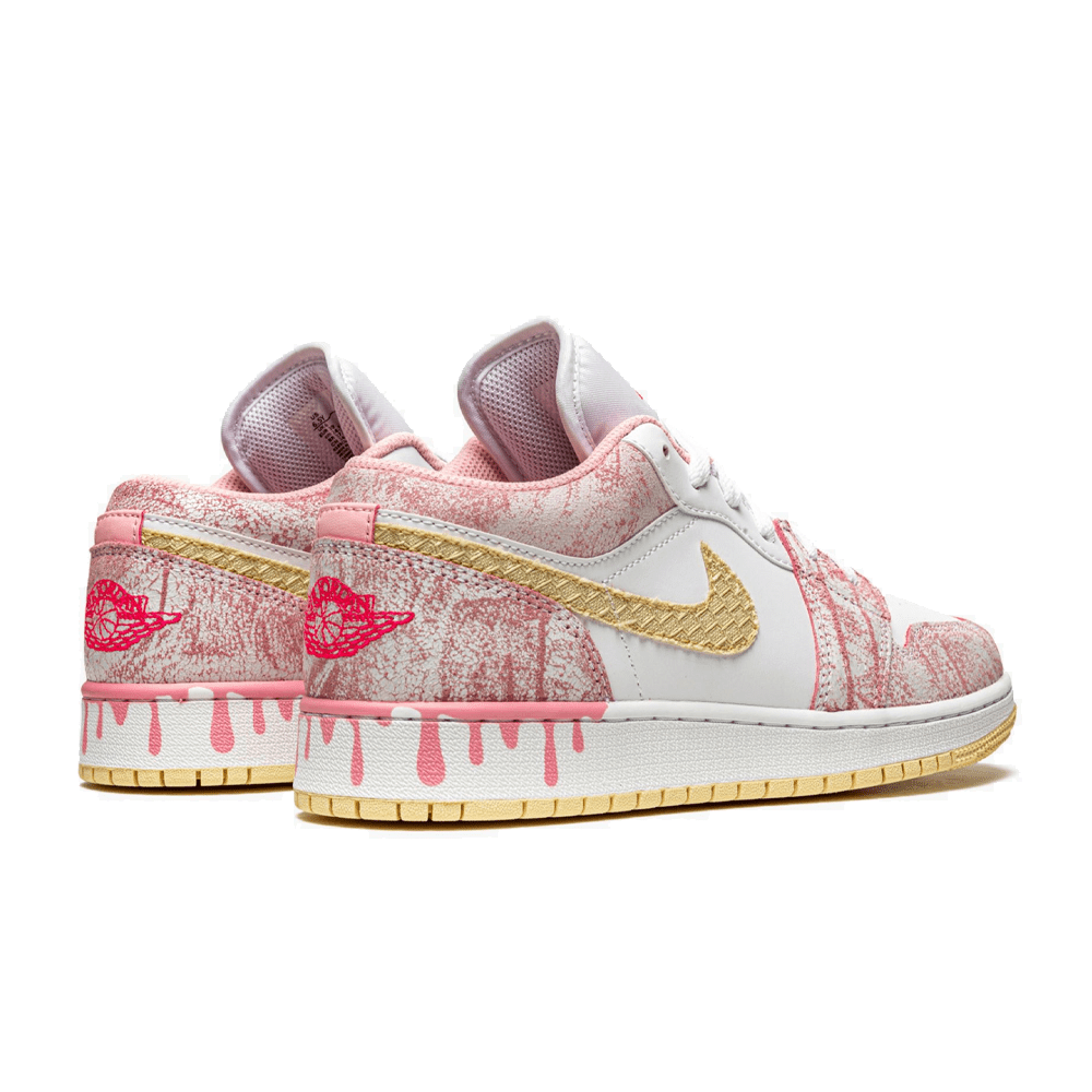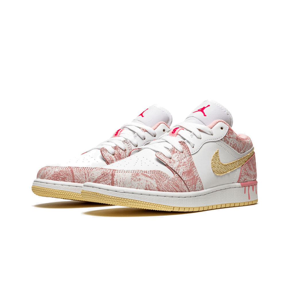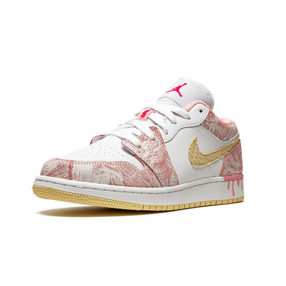The Jordan 1 Low GS Paint Drip Arctic Punch is part of a long line of offerings from nike this Easter. This ice cream-inspired AJ1 Low is the perfect, pink addition to your rotation this spring, with tumbled, suede, pink overlays dressing the toe cap, around the ankle and the heel.
