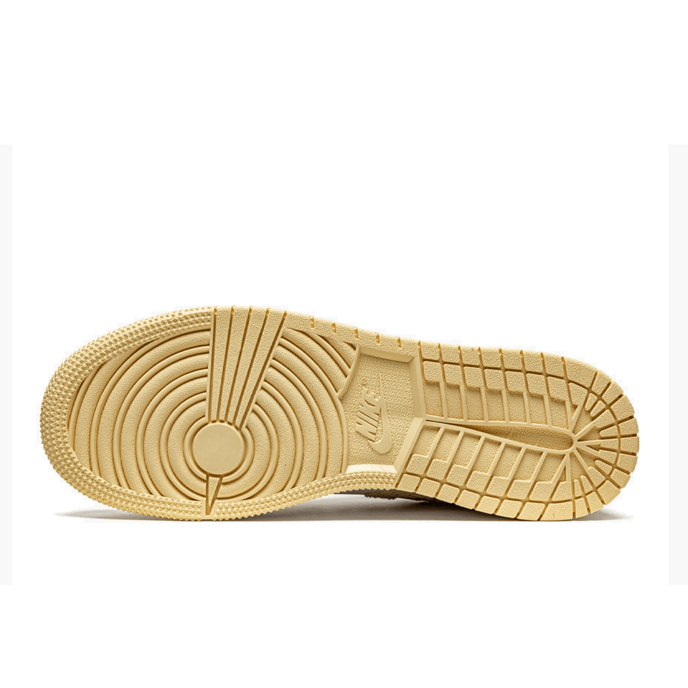 Underfoot, a gold, rubber outsole corresponds to the honeycomb-like, gold iconic Nike Swoosh on the medial and lateral sidewalls of this Air Jordan 1 . Michael Jordan's legendary Jumpman logo sits in bright pink at the top of the tongue, matching to the Wings insignia embroidered in neon on the heel of this J. All tied up with a white lace unit that matches the rest of the smooth upper, this Jordan is not complete without a little extra detailing that gives it its finishing touches.