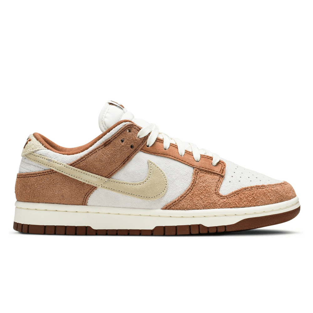 The Nike Dunk Low Premium ‘Medium Curry’ dresses the retro silhouette in a suede upper finished in warm, autumnal hues. A cream-hued base is contrasted by curry brown overlays at the toe and heel, while Fossil coloring is applied to the Swoosh and heel tab, the latter marked with traditional Nike branding. The low-top rides on a durable rubber cupsole, featuring a grippy traction pattern virtually identical to another mid ‘80s hoops shoe, the Air Jordan 1.