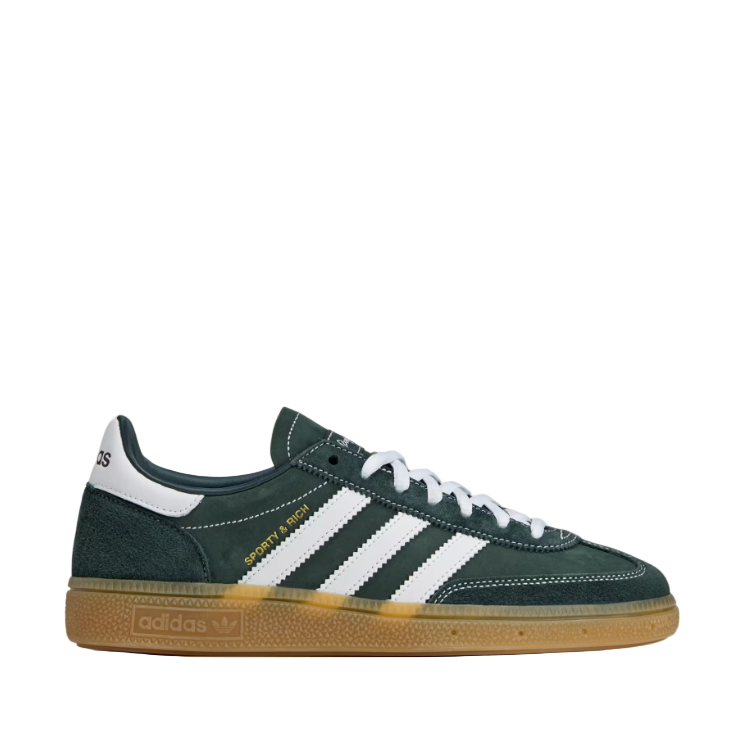 The Adidas Handball Spezial Sporty & Rich Dark Green revives the iconic terrace silhouette with a premium twist. Designed in collaboration with Sporty & Rich, it features lush suede, retro detailing, and classic 3-Stripes branding for timeless style.