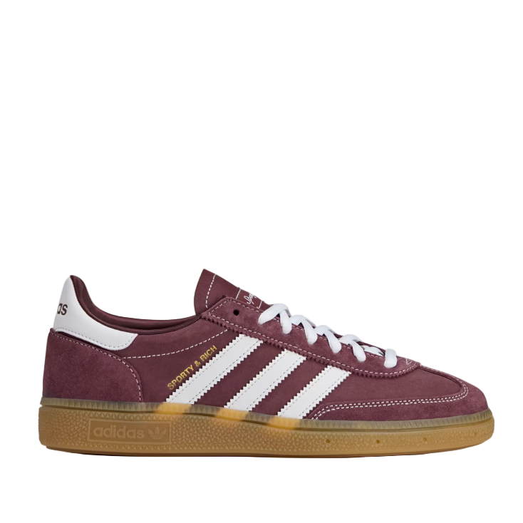 The Adidas Handball Spezial Sporty & Rich Shadow Red delivers a vintage-inspired look, blending Sporty & Rich elegance with Adidas' iconic terrace style. Crafted from premium suede in Shadow Red, this sneaker combines lifestyle fashion with retro charm.