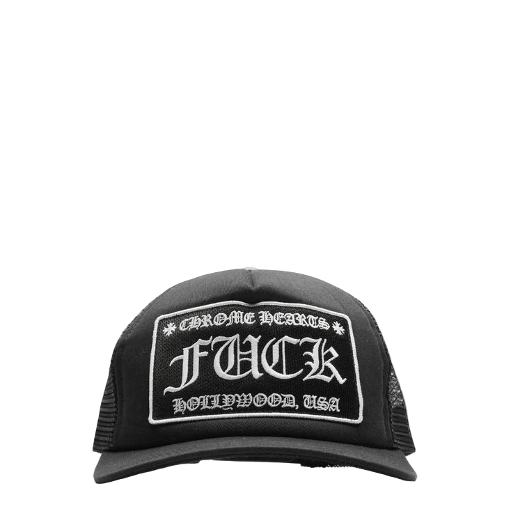 Chrome Hearts Fuck Hollywood Black Trucker Cap
