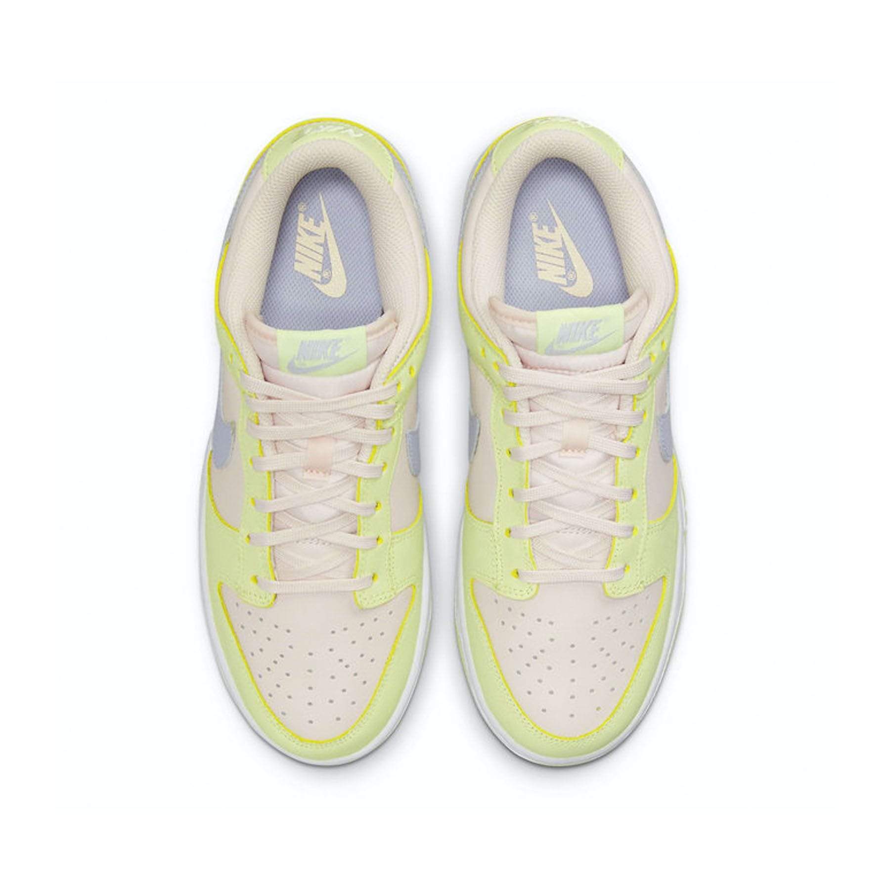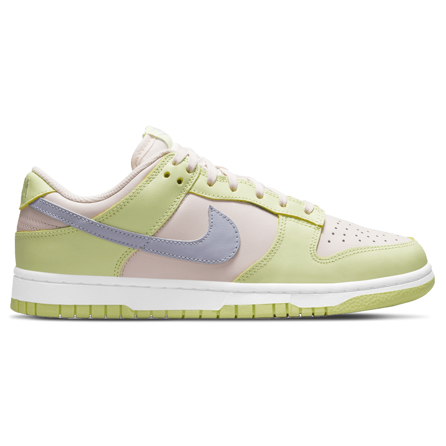The Nike women’s Dunk Low ‘Lime Ice’ updates the ‘80s hoops shoe with a summery palette made up of contrasting pastel hues. The leather upper combines a muted pink base with vibrant lime green overlays and a signature Swoosh in periwinkle. Standard Dunk Low elements include a perforated toe box, low-cut textile-lined collar and lightly padded nylon tongue. The sneaker is mounted on a sturdy rubber cupsole, featuring crisp white sidewalls and a lime green rubber outsole.