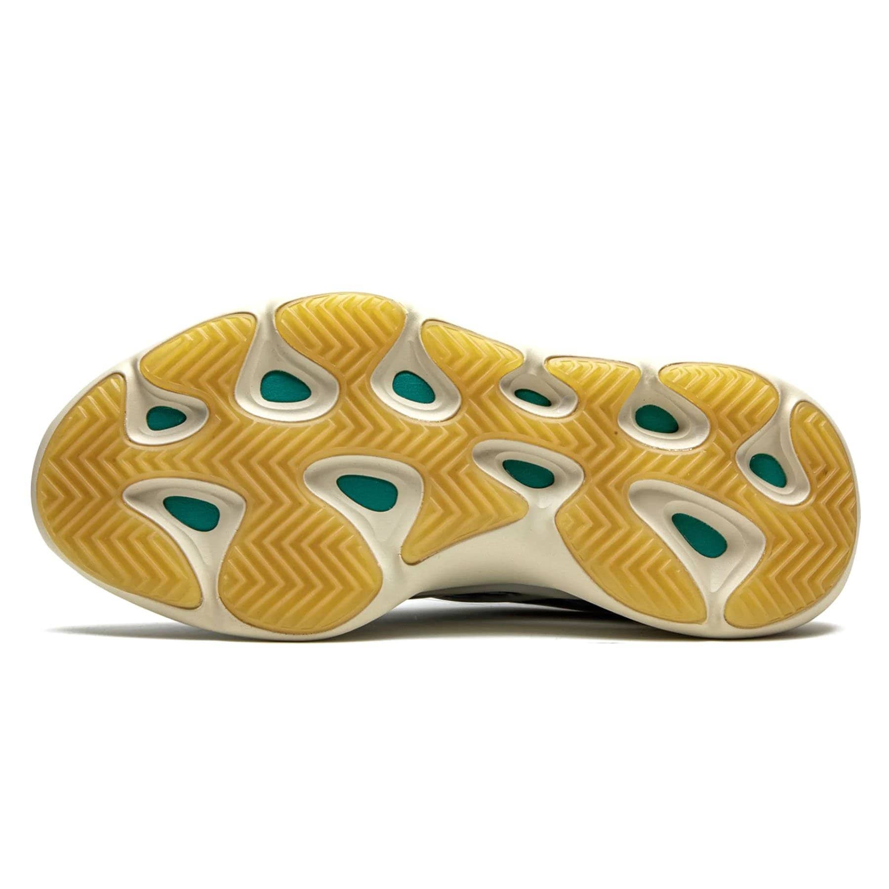 The adidas Yeezy 700 V3 ‘Kyanite’ showcases flowing stripes of blue coloring throughout the breathable upper, constructed from monofilament engineered mesh with exoskeletal RPU overlays coated in a glow-in-the-dark finish. Interior bootie construction delivers a snug fit, while a reinforced rubber toe cap provides added durability. The sneaker rides on a lightweight EVA midsole encapsulated in an off-white PU cage, supported by a herringbone rubber outsole.