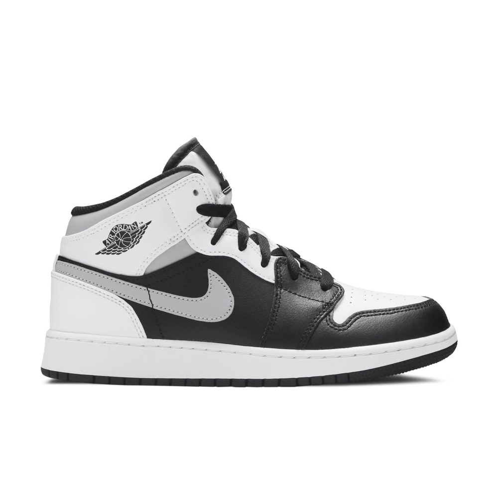 Dubbed ‘White Shadow’, this mid-top Air Jordan 1 comes with Black leather on the base, wrapping the toe, Wings logo and laces. White then lands on the ankle overlay, heel, down the eyelets, toe and midsole. Grey then lands on the Swoosh and ankle while a Black rubber outsole finishes the look. We recommend taking 0.5 size up in all GS Jordans (UK3 - 6)